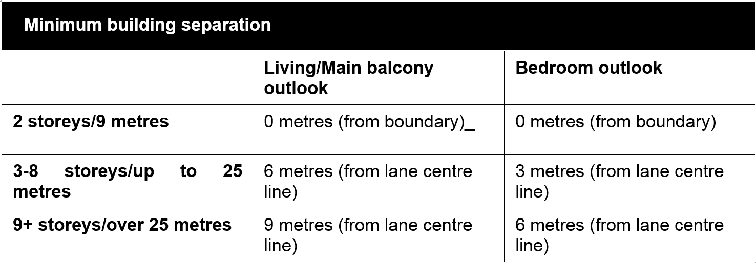 2. Zero building separation applies on sites where a continuous street wall is encouraged under the relevant place based planning controls.