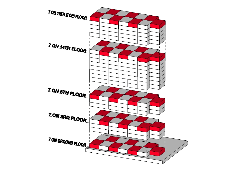 High Density (10+ stories) - Rate half the apartments across 5 floors including ground floor, middle floor, top floor and two others